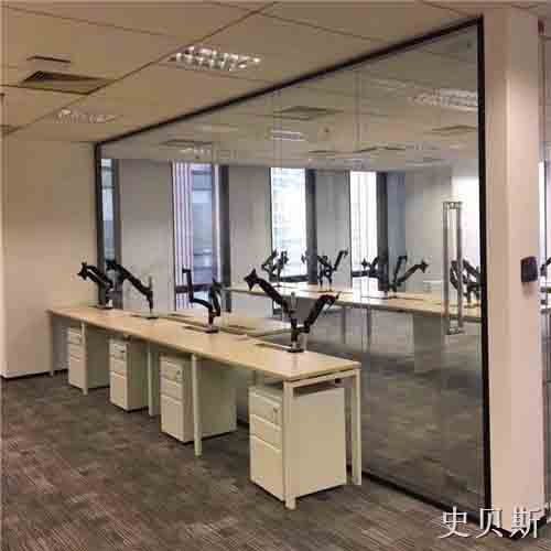 室内办公空间设计采用全景通透玻璃隔断墙体。兼顾采光和隔音的双重要求;尽可能地将室外光线引入办公空间,营造出简洁、通透、明快、现代、舒适的办公环境。全景无框透明玻璃隔断墙体——这种风靡全球的现代、简约、环保的办公风格让世界的人们更将可健康、更有生命力。他是工业化装潢的代名词,是世界流行模块、成品隔断的标志。